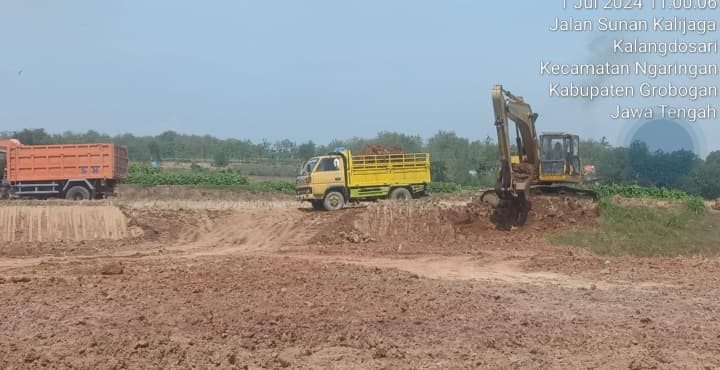 GROBOGAN || Petanesia.com - Tambang galian c diduga ilegal beroperasi di Desa Kalangdosari, Kecamatan Ngaringan Kabupaten Grobogan. Senin ( 01-07-2024 ).